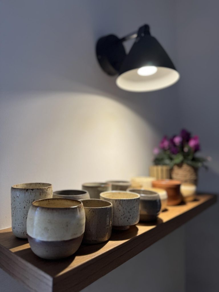 ועד שאצלם את המטבח כמו שצריך, תמונה של מדף במטבח עם הספלים שהכנתי בחוג אובניים 😊