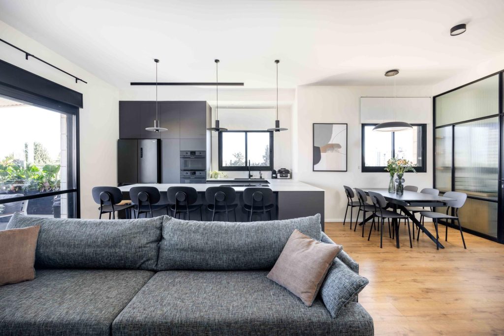 שינינו מיקום של פריטי הריהוט בחדר, צבענו את הקיר המרכזי בגוון של אפור ובכדי להוסיף עניין וצבעוניות הדבקנו עליו מדבקות קיר מהממות עפ”י סקלת הגוונים שנבחרה.