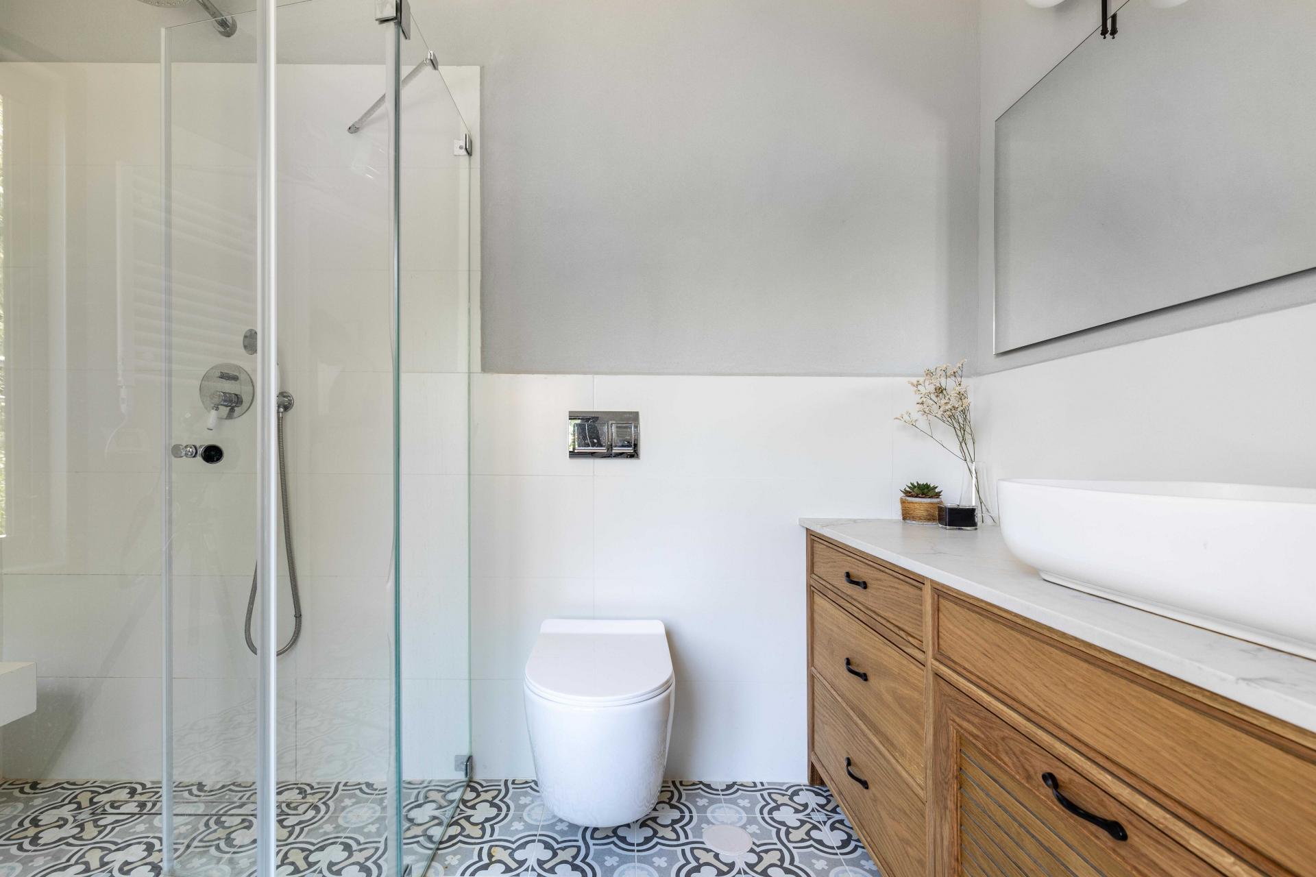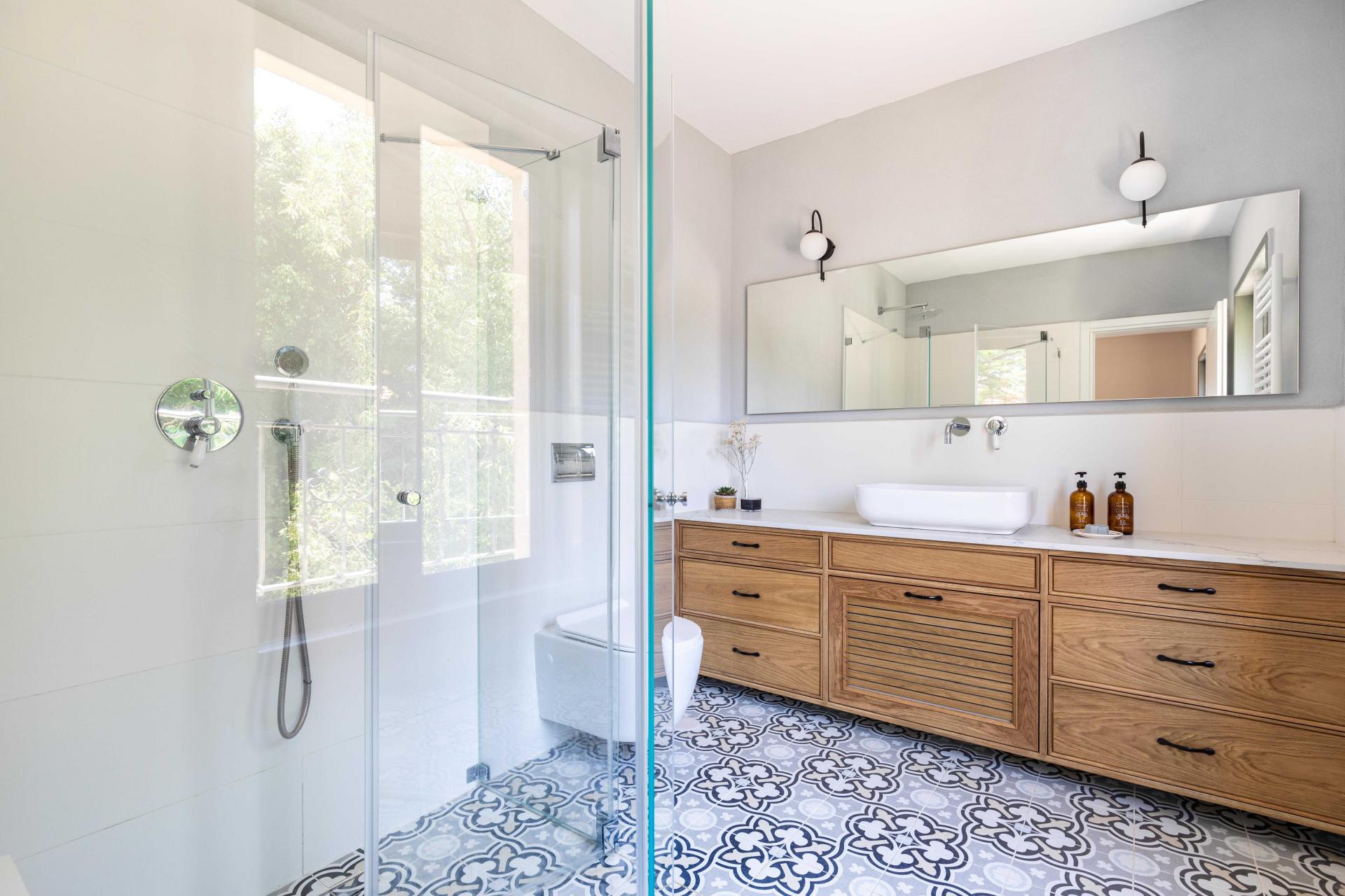 בקומת חדרי השינה נעשה שיפוץ כללי בחדרי הרחצה, הותקן פרקט ותוכנן אזור לטובת ספרית ספרים גדולה ועמדת עבודה נוספת לטובת בני המשפחה.