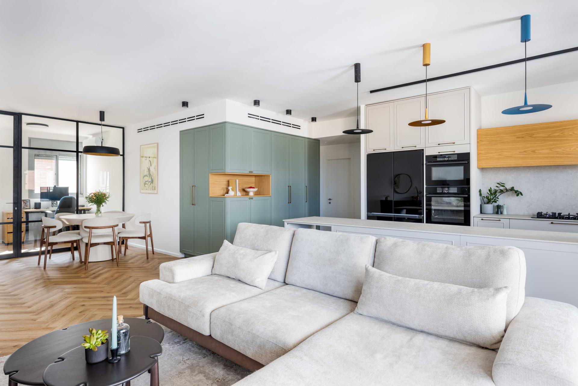 עיצוב בית לזוג עם ילד צעיר שביקשו בית חמים, אישי, פרקטי, עם חללים נוחים לשימוש יומיומי, אחסון רב ומאורגן, מטבח שמתאים לאוהבי בישול ואירוח וגם תכנון של חדר עבודה המאפשר עבודה שקטה מהבית.