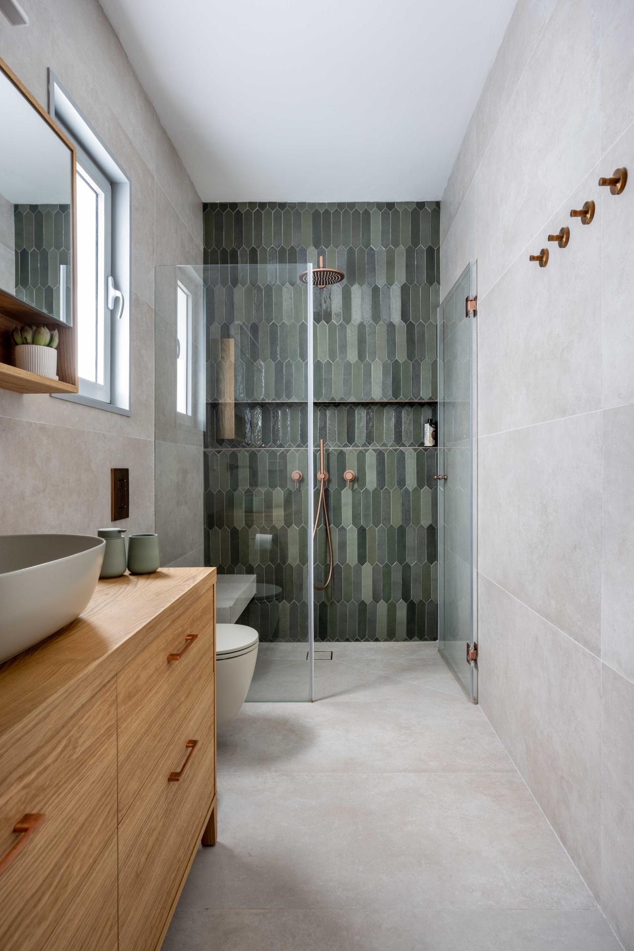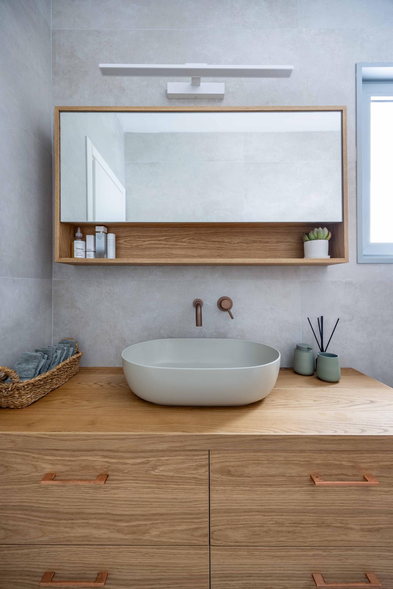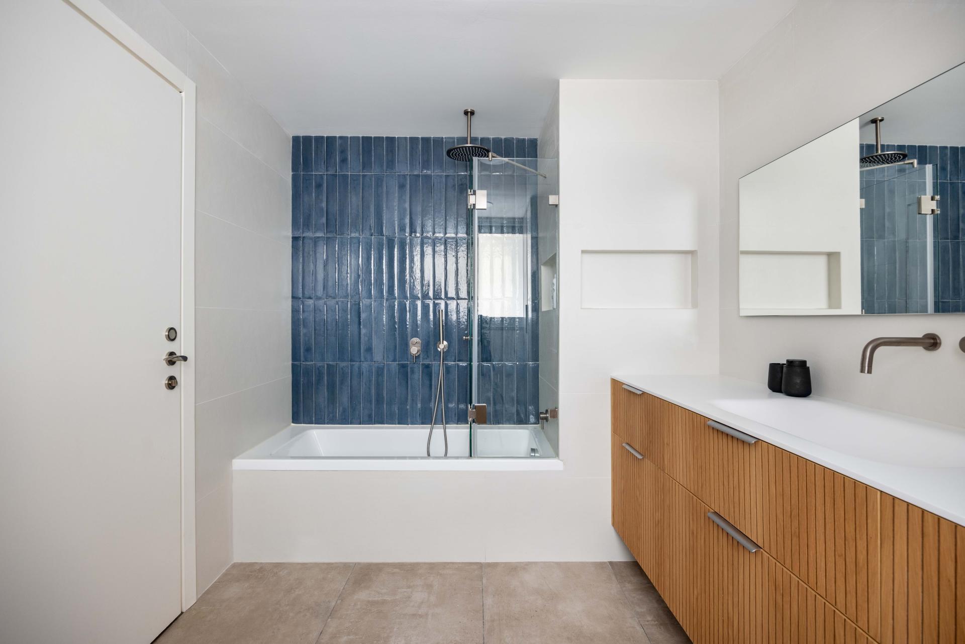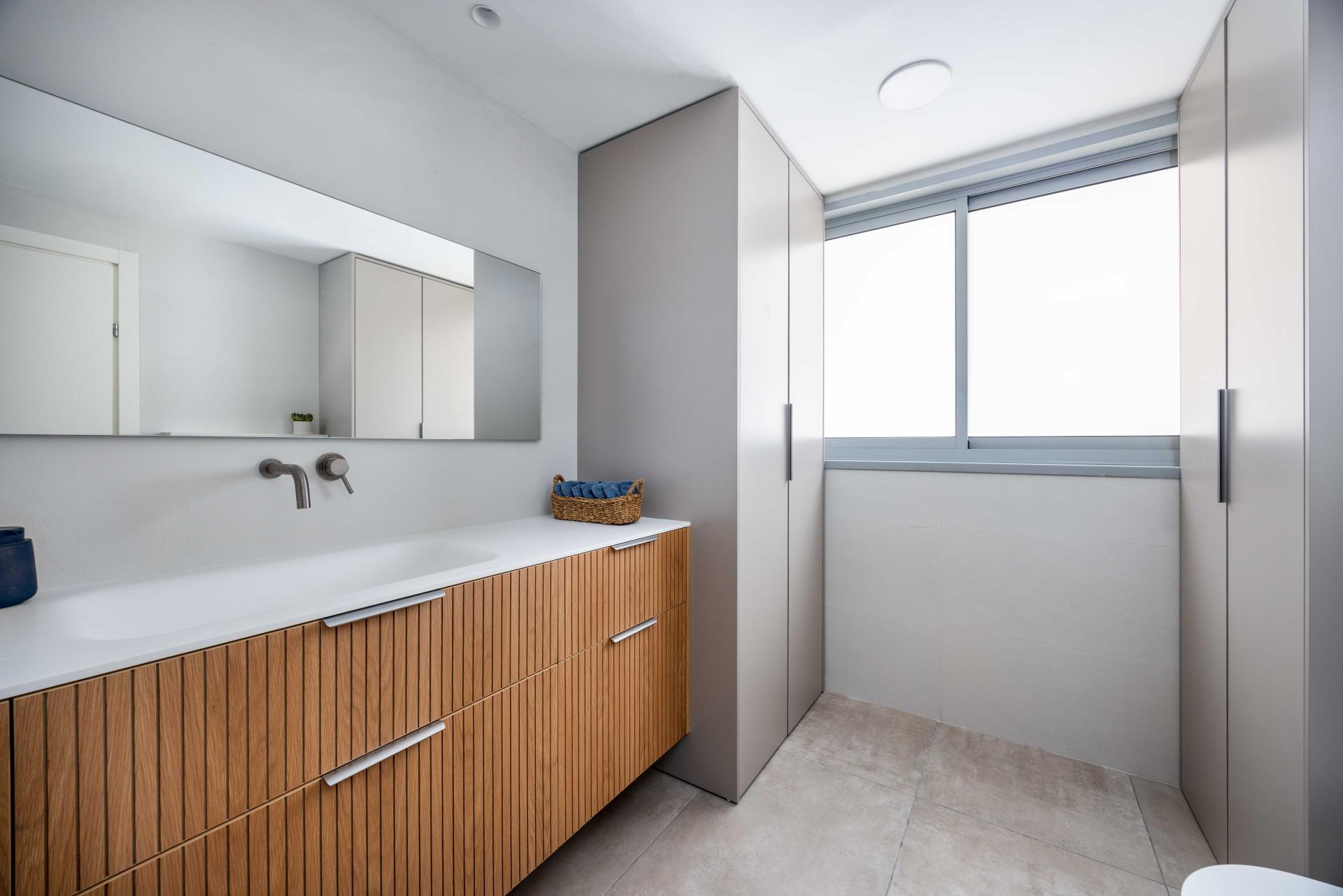 כל הבית עבר שיפוץ כללי ומקיף, החל מחדרי רחצה חדשים, דרך תכנון מטבח חדש ועד שינוי מיקומי הפונקציות במרחב הציבורי.