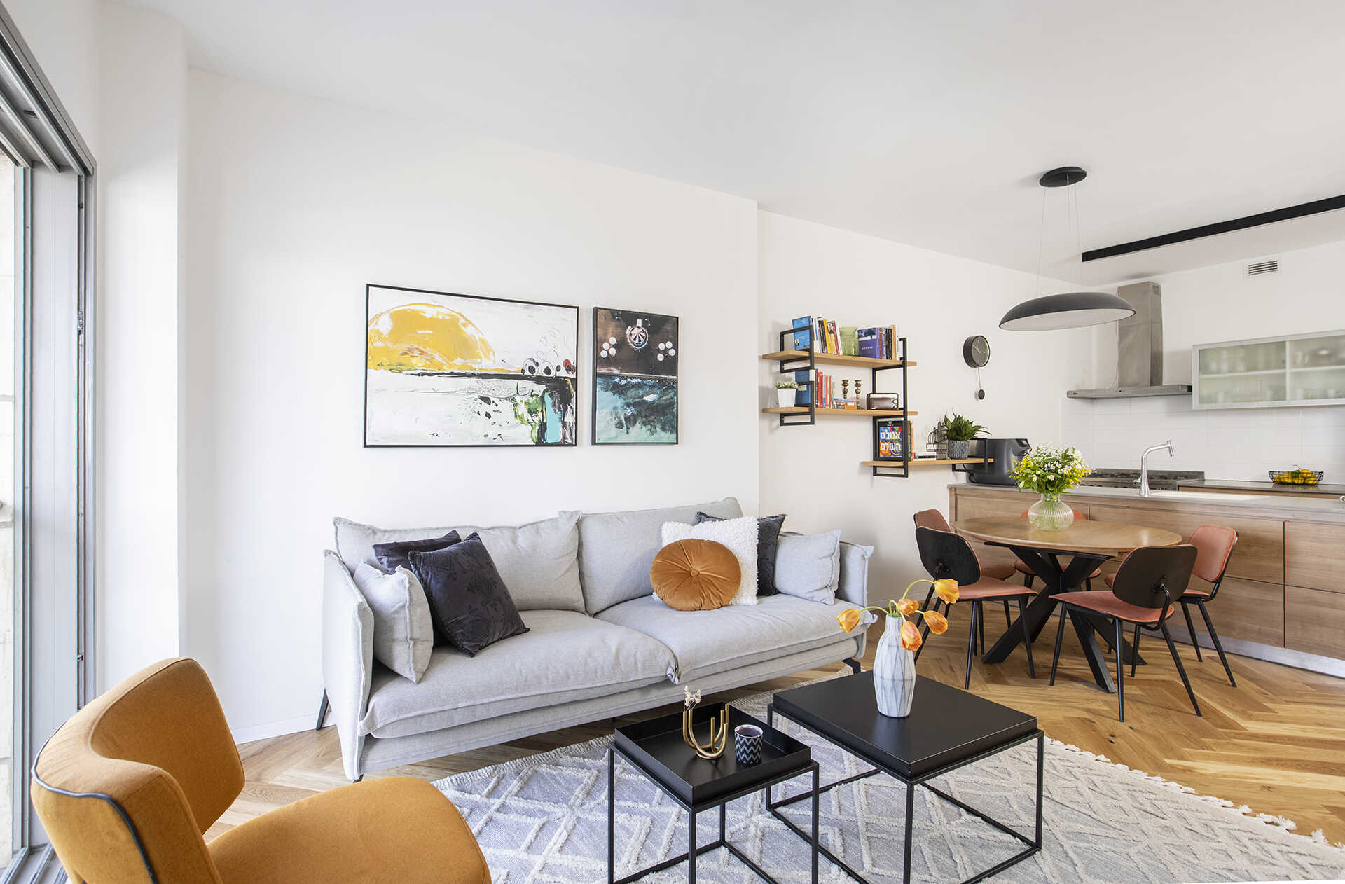 שם נמצאת הדירה שעיצבתי בקו צעיר, מודרני, חמים, מזמין, נוח.